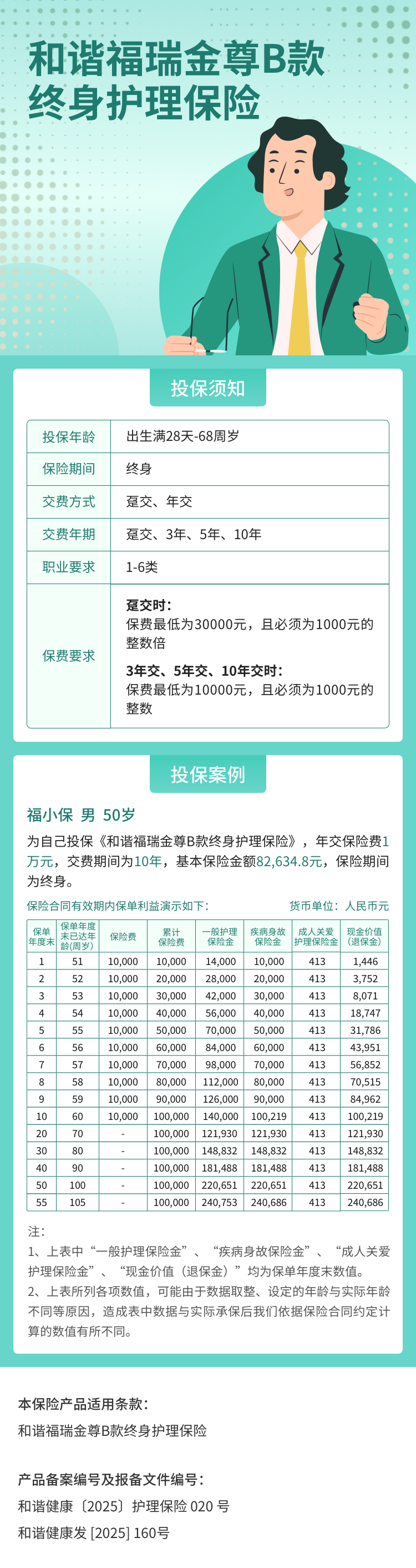 和谐福瑞金尊B款终身护理保险