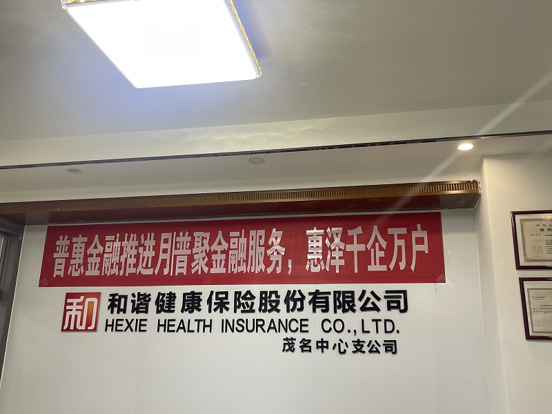 和谐健康茂名中支进行了一系列职场布置:在职场电子屏循环播放普聚金融服务为主题的宣传片;在前台设立普惠金融咨询台,为来访客户提供更便捷的普惠金融咨询服务;在职场悬挂普聚金融服务,惠泽千企万户”宣传横幅;在办公职场宣传架上放置普惠金融相关宣传折页和公司普惠产品宣传海报,以供到访客户浏览。