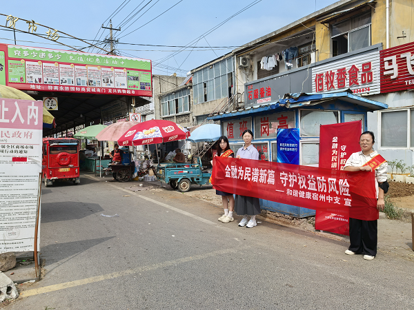 分公司走进肥东县店埠镇石塘路菜市场,宿州中支走进符离镇农贸市场,滁州中支走进滁州市南谯区沙河镇农贸市场,在人流量较多的集市设置金融知识宣传摊位,聚焦“金融为民谱新篇 守护权益防风险”宣传活动主题,向过往居民发放宣传彩页,耐心地讲解消费者八大权利、金融诈骗的常见手段以及如何维护自身的金融消费权益,以通俗易懂的语言和生动形象的案例,帮助居民更好地理解和掌握金融知识。