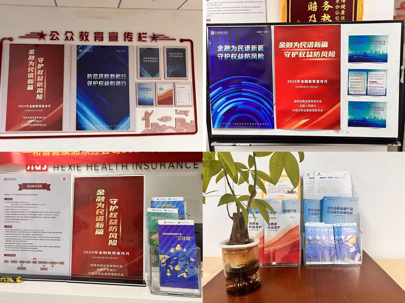 我司丰富宣传途径,采取线上线下相结合的方式开展集中宣传教育活动。在教育宣传月活动期间,紧紧围绕活动口号“金融为民谱新篇 守护权益防风险”,借助多样化宣传渠道,如公司官网、微信公众号、微博、抖音等开展保险教育宣传,通过发布公司原创宣传文案“以案说险”及消费风险提示等金融消费者权益保护知识,要求进行自媒体上传。开展高管讲消保活动,发布“高管讲消保”视频,提示消费者防范金融风险,远离非法集资。