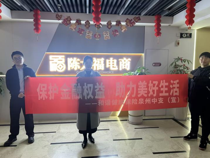 为了落实“3·15”消费者教育宣传“五进入”活动要求,2025年2月28日,和谐健康泉州中支走进企业,前往幸福电商园区的陈大福电商开展消保宣传。本次消保宣传主题为“保障金融权益,助力美好生活”。