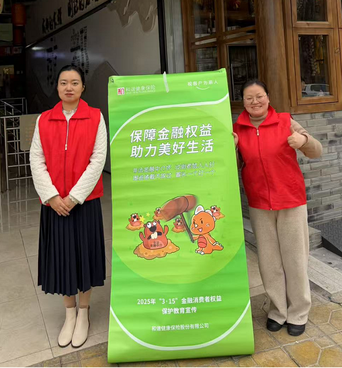 为扎实推进“3.15”金融消费者权益保护工作,构建和谐健康的金融消费环境,提振和扩大消费,维护金融消费者合法权益,2025年3月11日上午,和谐健康四川分公司开展线下金融保险教育宣传进社区活动。