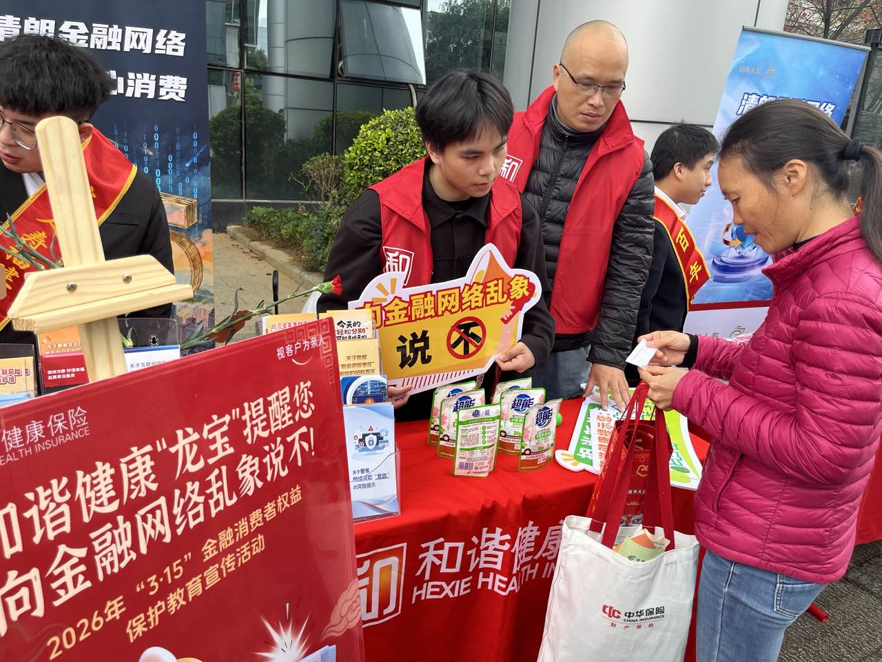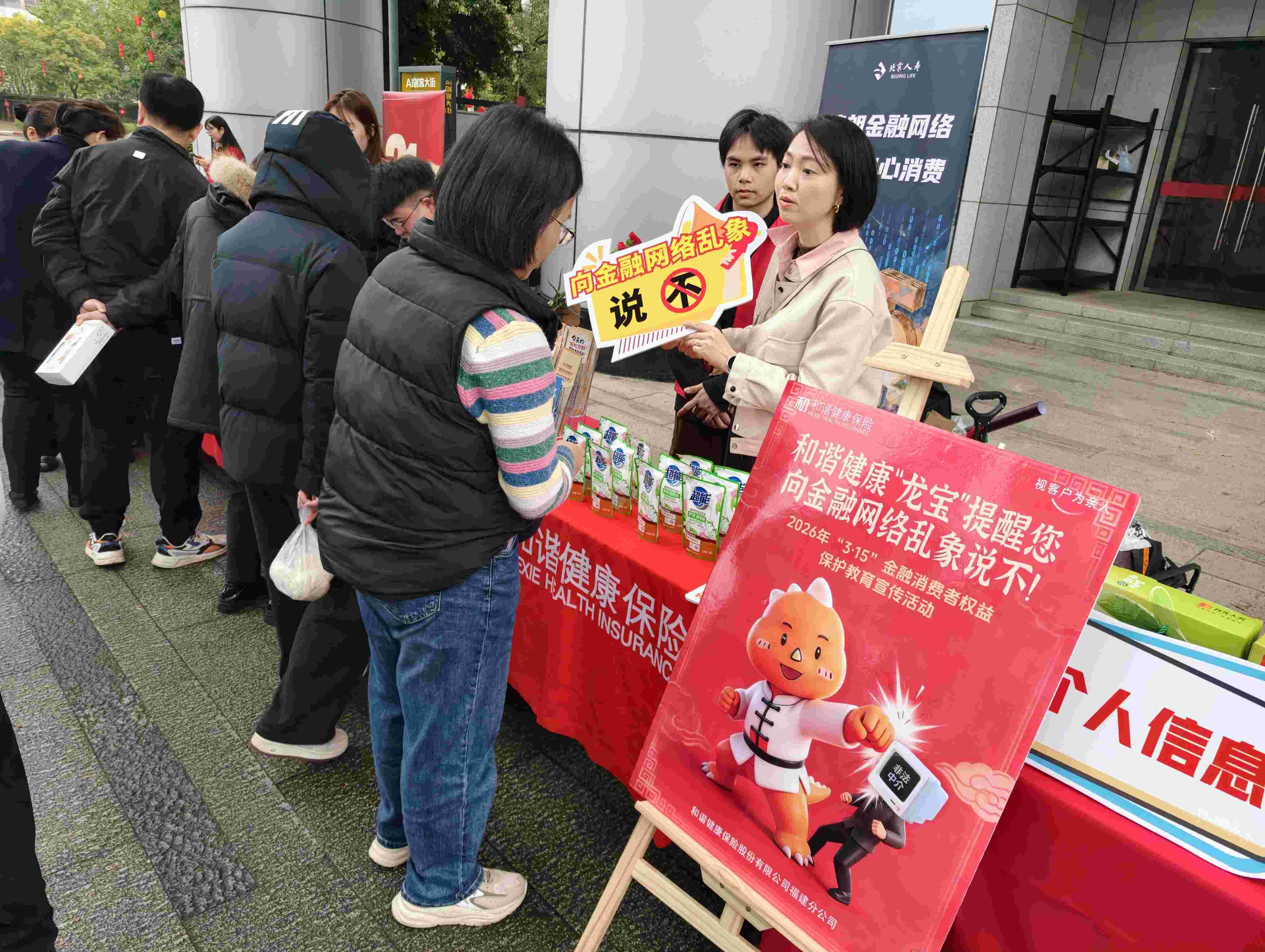 2026年3月5日,闽侯高新区科创金融服务基地内人头攒动。和谐健康福建分公司协同多家同业在这里举办了一场数字金融消保宣传活动。本次活动以“数字高新守权益 消保护航新经济”为主题,福州高新区财政金融局林健局长、福建省金融消费者权益保护协会詹功俭秘书长等领导莅临指导。