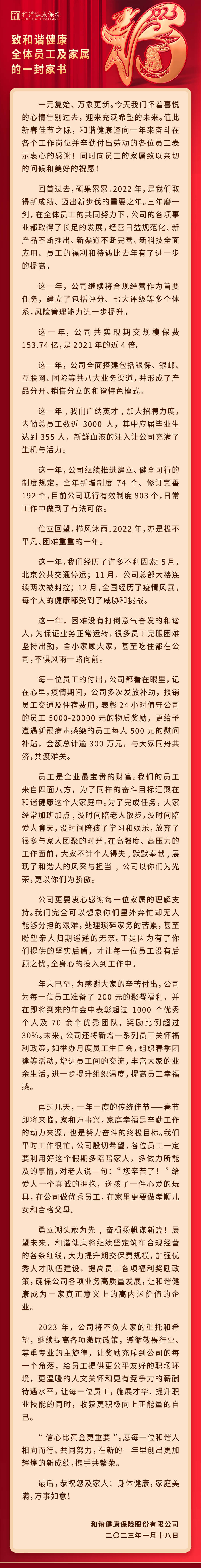 致和谐健康全体员工及家属的一封家书
