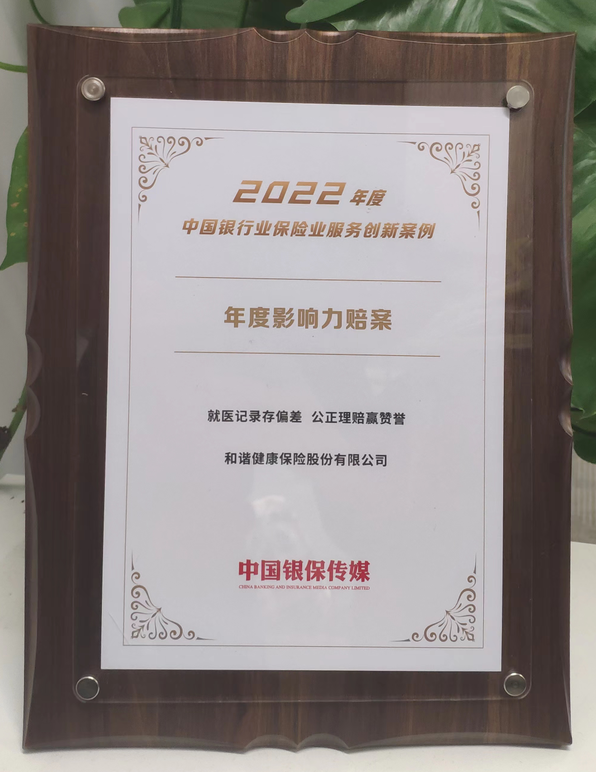 和谐健康保险荣获2022“年度影响力赔案”奖项